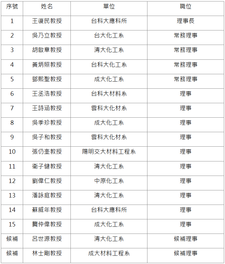The list of the new President, Executive Directors, Executive Supervisors, Directors, and Supervisors is as follows: